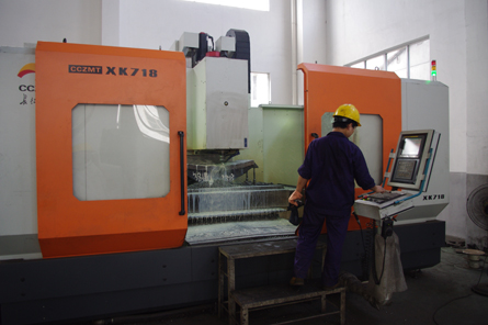 零件圖中的設(shè)計(jì)基準(zhǔn)是圓筒的軸心線,為了保證內(nèi)外圓同軸度,加工卷焊圓筒時,仍然以圓筒軸心線為定位基準(zhǔn)車外圓、內(nèi)圓、其中一個端面以及倒角,然后在以已加工的端面為基準(zhǔn)加工另一個端面,再然后加工內(nèi)表面的燕尾槽,它的設(shè)計(jì)基準(zhǔn)是上下兩個端面,而加工時則需要同時考慮它與端面以及它們之間的位置關(guān)系,因此加工時,先加工最外面的槽時以端面為基準(zhǔn),用成型銑刀直接銑削,加工完成后在以加工好的槽最上沿為基準(zhǔn)加工第二個槽,以此類推,直到加工結(jié)束。當(dāng)加工達(dá)到要求后再以軸心線為基準(zhǔn)將圓筒切成弦長為535.5的10塊鋼板。每塊鋼板的中心線為設(shè)計(jì)基準(zhǔn),其它尺寸都是以它為基準(zhǔn)確定的,加工時以上下兩個端面和中線作為定位基準(zhǔn)。因?yàn)樯舷聝啥嗣嬉呀?jīng)在上一道工序中加工好了,表面精度已經(jīng)達(dá)到要求,它直接與夾具接觸。然后以中心線為基準(zhǔn),加工外表面的槽以及以左右兩個面為基準(zhǔn)分別將其與外邊面連接的地方倒角,用銑削完成。最后以中心線或左右端面為基準(zhǔn)找內(nèi)螺紋的圓心,分別加工內(nèi)螺紋。