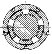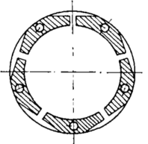 (2)為防止在工作狀態(tài)下瓦塊順軸向轉(zhuǎn)動,一般應(yīng)設(shè)計防轉(zhuǎn)定位銷,可根據(jù)結(jié)構(gòu)不同而使用不同的定位方式,定位銷與銷應(yīng)留有合理的間隙,最佳值應(yīng)為孔徑:D=d×1.21.4,式中D為柱銷孔,d為柱銷。保證瓦塊在瓦殼內(nèi)能夠自由擺動。