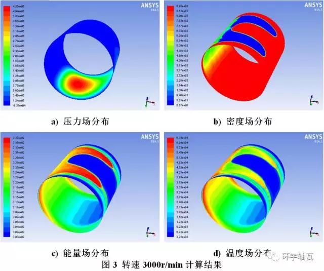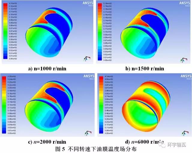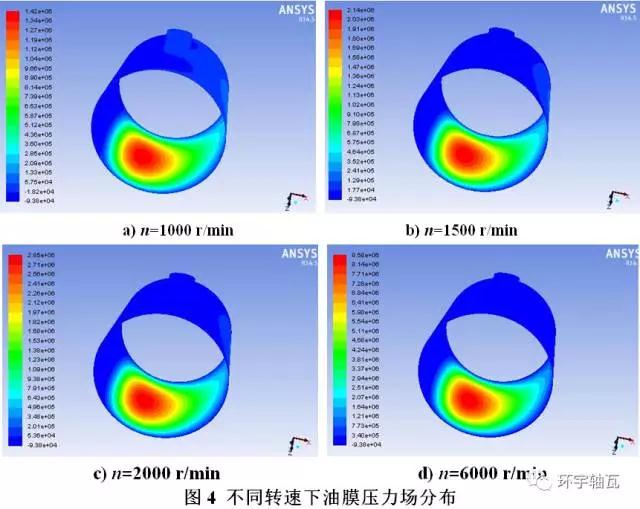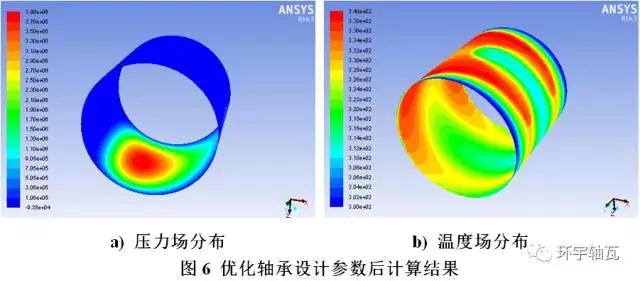 因而,通過(guò)壓力分布和溫度分布圖可有針對(duì)性地改進(jìn)軸承的散熱結(jié)構(gòu),為軸承設(shè)計(jì)提供重要的理論依據(jù),大大降低多次實(shí)驗(yàn)所需的高額成本。
