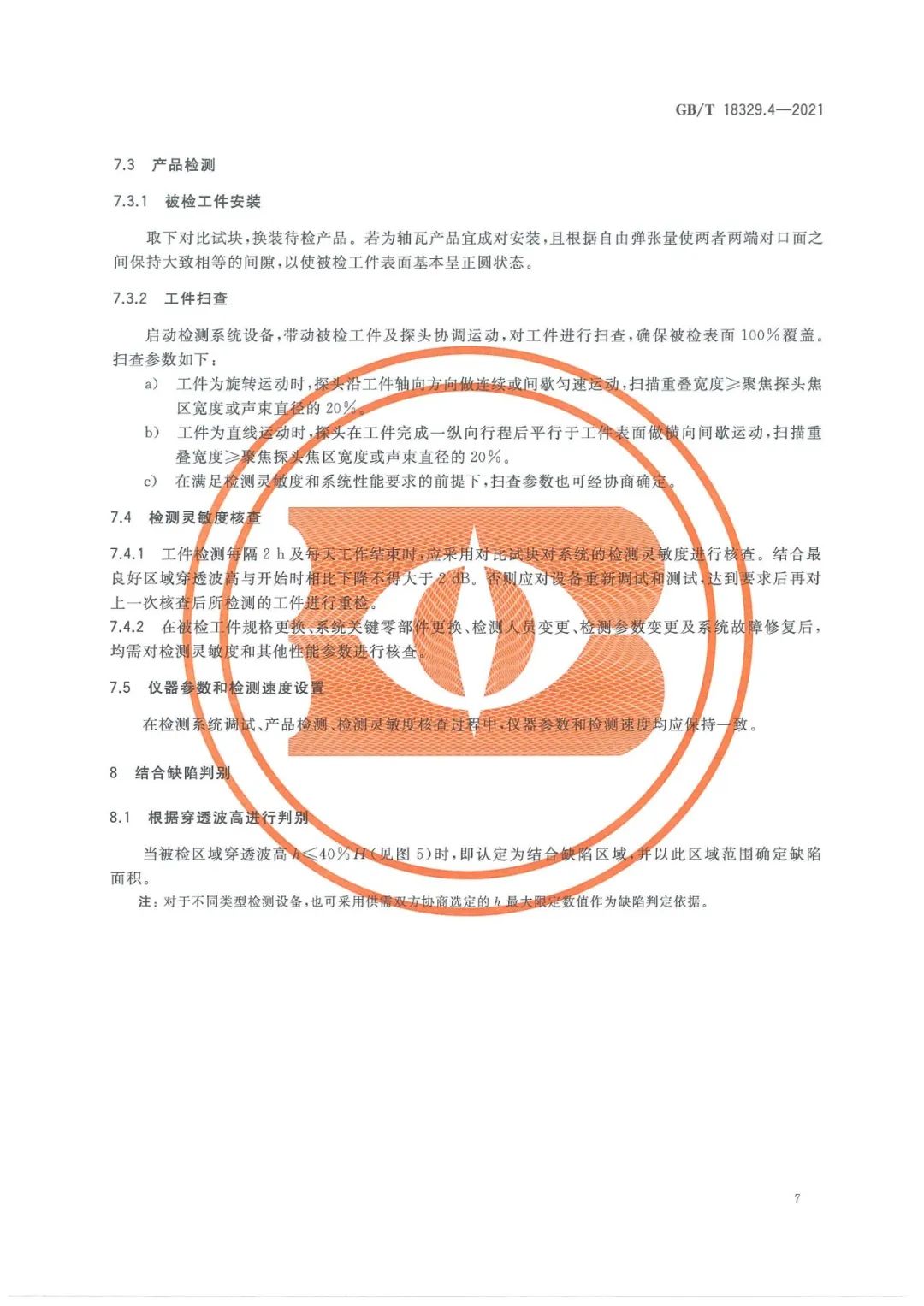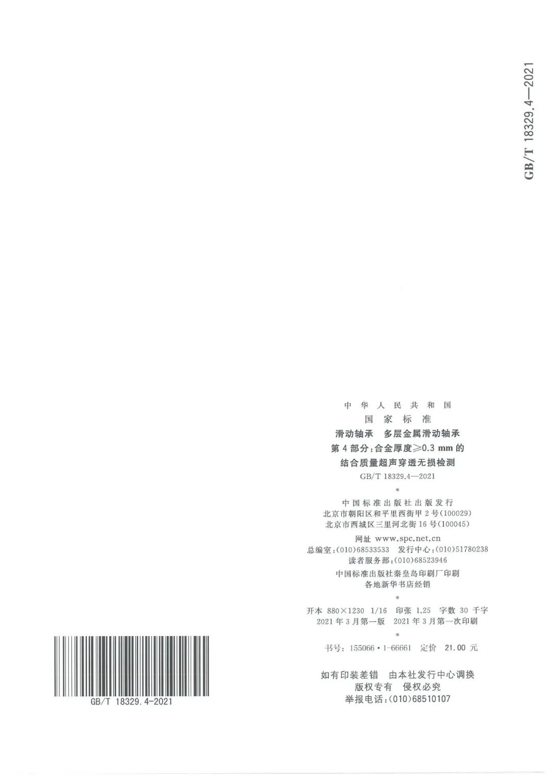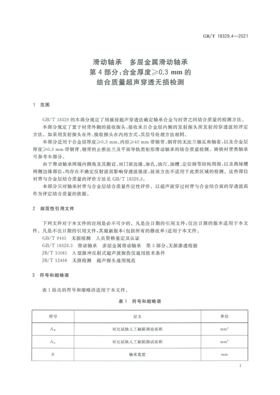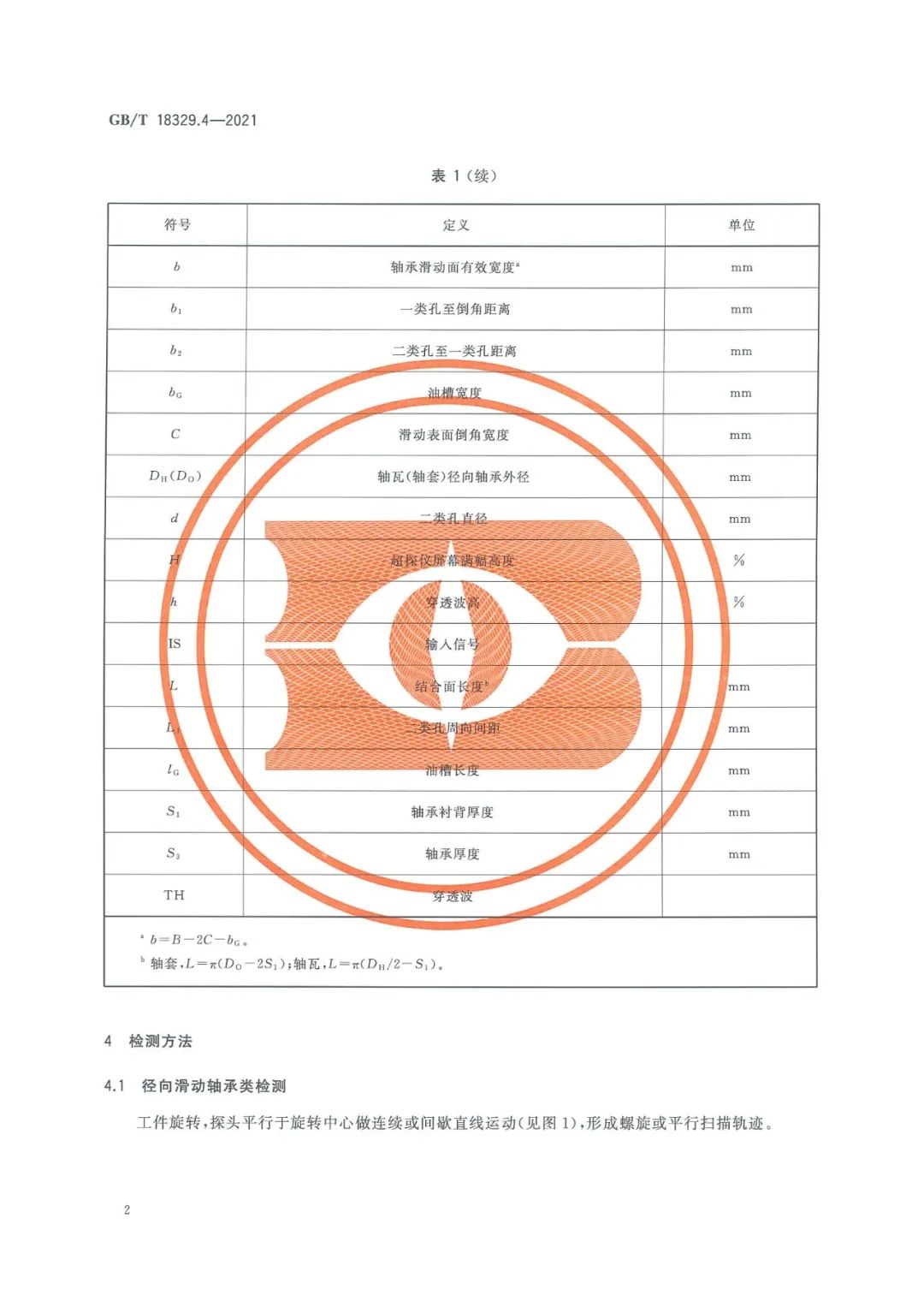 GBT 18329.4-2021 滑動(dòng)軸承 多層金屬滑動(dòng)軸承 第4部分:合金厚度≥0.3mm的結(jié)合質(zhì)量超聲穿透無損檢測