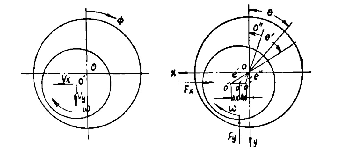 油膜的動力特性,包括油膜剛度和阻尼,反應了當軸頸偏離了靜平衡位置并在此位置附近作變位運動時油膜力相應的變化情況。