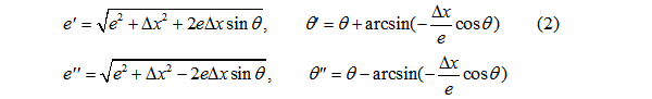 Kxx為例,x方向給以+△x、-△x位移,由幾何關系,新位置下的偏心率、偏位角: