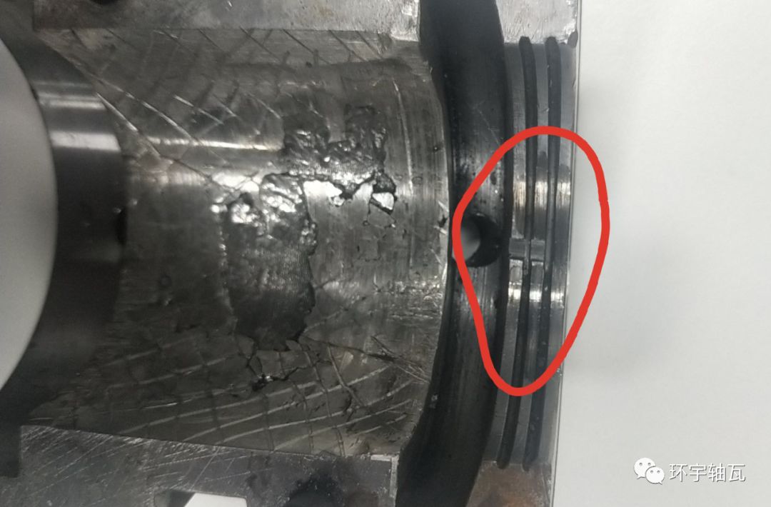 2. 下瓦合金大面積剝落和裂紋,且剝落表象不規(guī)則,此為疲勞剝落的典型形態(tài);(在交變載荷的作用下,軸承合金表面出現(xiàn)與滑動(dòng)方向垂直的疲勞裂紋,當(dāng)裂紋向軸承合金襯與襯背結(jié)合面擴(kuò)展后,造成軸承合金的剝落。)